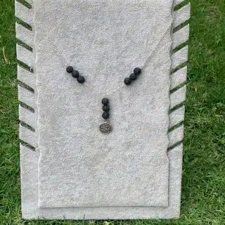 السلسلة دي معمولة من فضة 925 وشكلها شيك جدًا. البندانت بتاعها على شكل دمعة، وفي النص فيه حجر أونيكس لونه اسود ولامع بيزودها شياكة وأناقة. الدمج بين الفضة والأونيكس عامل شكل هادي وكلاسيك في نفس الوقت. قطعة ناعمة ومميزة تناسب أي لوك شيك
