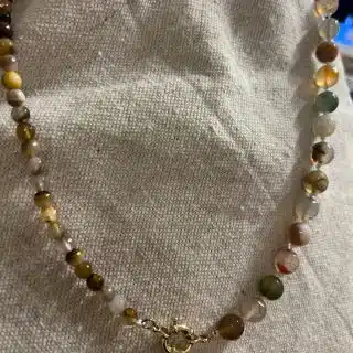 Elegant white bracelet mixed with artificial gemstones and silver spacebead.