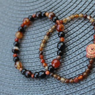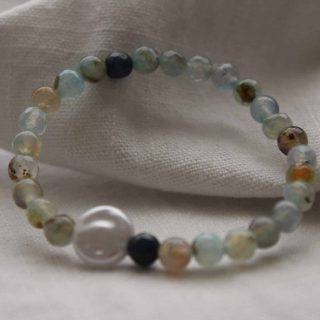 The bracelet set is crafted from artificial stones and features a seashell charm.