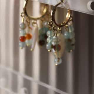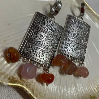 Women’s Earrings with Turquoise stone – Silver color, dangling and round shape
