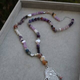Handmade Necklace with a touch of dark blue beads mixed with elegant stones & artificial agate