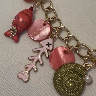 Summertime necklaces, white shell beads , starfish beads, fish charms, sold separately.