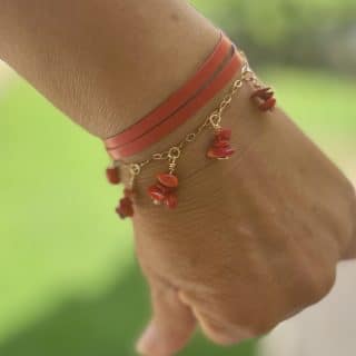Gorgeous leather bracelet, coral beads, gold filled clasp & wire, great gift