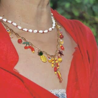 Red & yellow charms chain necklace, shell necklace. Sold separately