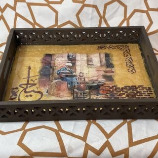 Wood nuts plate 40 cm, with six coasters 10*10 cm El Lela elkebera