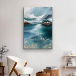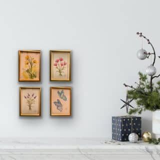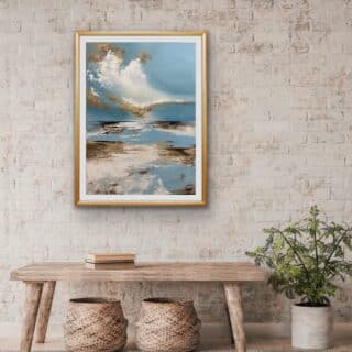 waterolors on paper with metallic colors framed with double glass and 3 cm glass all around