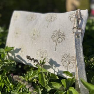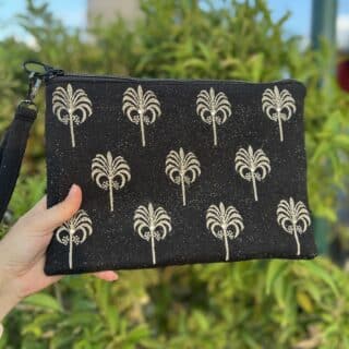 Bold yet minimal. The black Palmera clutch showcases silver palm embroidery that captures the spirit of summer nights. A statement accessory that speaks softly but leaves a lasting impression.