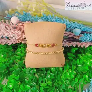 Material: Chinese gold+ stainless steel .. colour doesn’t change.