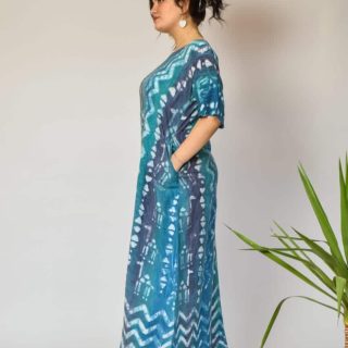 *فستان نص كم مستوحى من رسومات التطريز لفن التلى