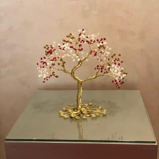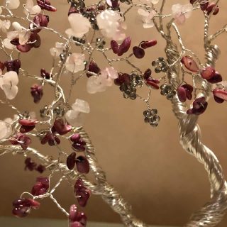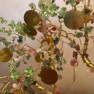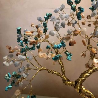 40 cm copper wire tree with soda light and aqua marine stones with a touch of crystals