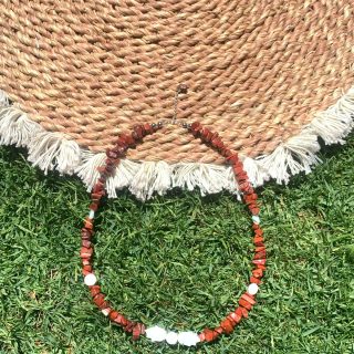 تمتع بأناقة جريئة مع سلسلتنا المصنوعة من الجاسبر الأحمر، والتي تتميز بقفل وسلسلة من الفضة 925. يجمع هذا القطاع بين طاقة الحجر الطبيعي وجمال الفضة لمظهر قوي أنيق.