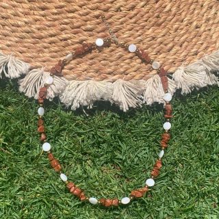 ألوان دافية ولمسة ناعمة. الطقم معمول من حجر العقيق البني الطبيعي ومعاه فواصل فضة 925.