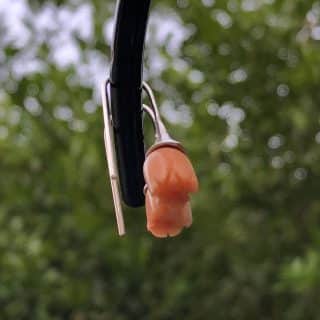 A delicate tulip carved from pink coral, set in 925 sterling silver – elegance in bloom.