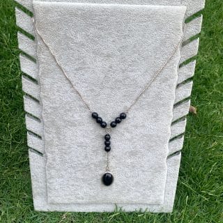 اعرف يعني إيه تميز حقيقي مع العقد ده المصنوع يدويًا من حجر العقيق الأسود الطبيعي (Onyx) واللي متثبت في فضة إسترليني 925 نضيفة وفخمة.