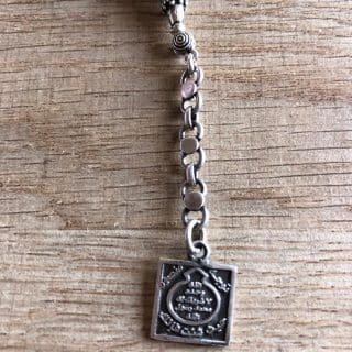 سبحة يدوي بـ٣٣ حباية جولد ساندستون، ومعاها فواصل من زجاج مورانو، ومزينة بحلية فضة مكتوب عليها مودة.
