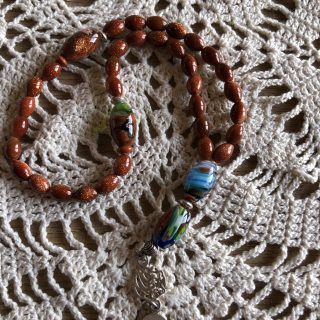 • Handmade Original 925 Silver 33-Bead Gold Sandstone and Murano Glass Rosary