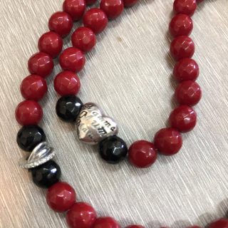 سبحة فضة 925 بخرز عين النمر، وفي آخرها تلات سلاسل ناعمة بكور شبه المرايا. بسيطة وشيك جدًا.