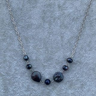 925 Silver Black Pearl & Black Seashells Necklace