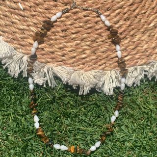Elevate your style with our 925 silver necklace, featuring mesmerizing tiger eye stones and natural seashells — a perfect blend of strength and serenity.