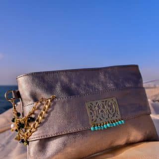 Very deep wide clutch fabric material Decorated with pearl & natural stones & sea shell