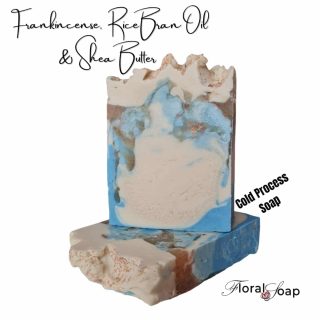 It’s a hand-crafted natural soap, with Frankincense &Rice Brain Oils.