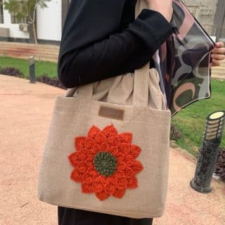 Beige Tote bag with 2 large outer pockets and a small inner pocket.