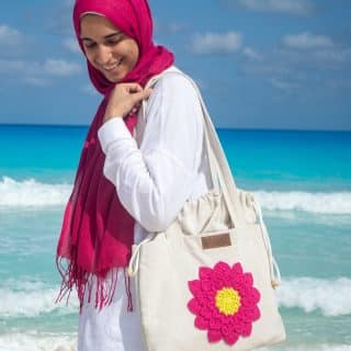 Light Cream Tote bag with 2 large outer pockets and a small inner pocket.