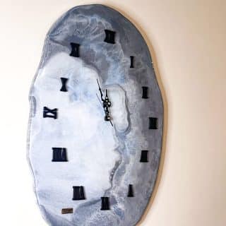 - Handmade of epoxy resin on natural live-edge beech wood & black steel bar/ hangers/ holders.
