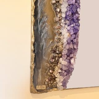 - Stainless steel 2 in 1 cake Knife/ shovel with a handmade faux stone, made of epoxy resin & surrounded with gold leaves.