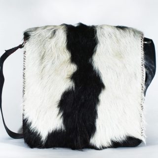 A Beautiful, Hair-On, Functional Messenger Bag made of the finest long-haired cow hide genuine Leather.