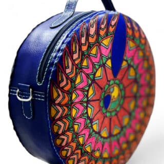 A Handpainted, Genuine Leather, Crossbody/Hand Round Bag with an Egyptian Horus