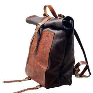 Genuine Leather Rolltop Backpack, Embossed Leather Backpack, Leather Rucksack, Leather Bag