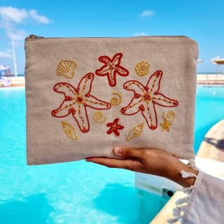 Sea Star Hand-embroidered Linen Clutch