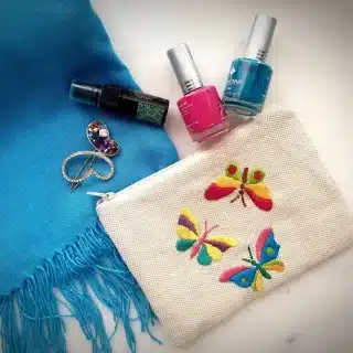 Hand- embroidered cotton pouches zipped with inner lining