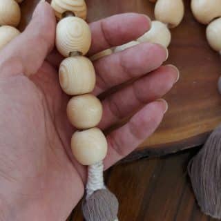 فيها ٣٣ خرزة خشب تركى وطولها حوالى من ٨٠:٩٠ سم