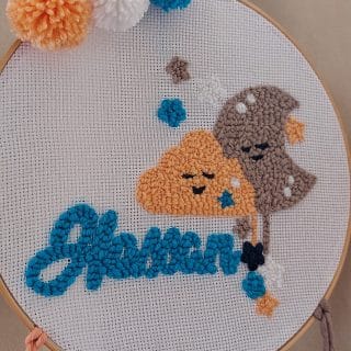 معلقة حجرة مستشفى أو حجرة أطفال من البانش نيدل والمكرمية – Baby macrame & Punch needle wall hanging