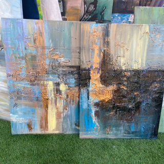 Texture painting withe acrylic and paste made by knife with amazing colors (gold, black , red , blues and white) size (120×100) cm and thickness 4 cm without frame