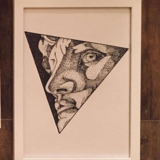 Abstract houses. Size 20*15 cm. Gold, black and white. On bleech wood.