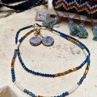 سلسلة كوردون جلد بدلاية خزف تونس واحجار نصف كريمة.