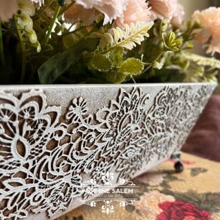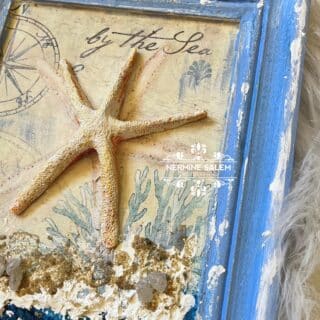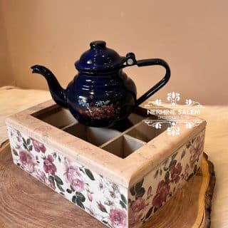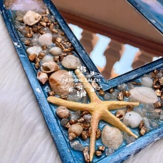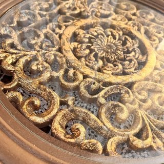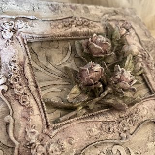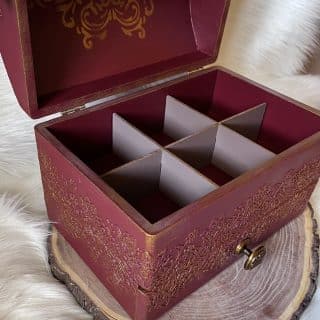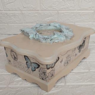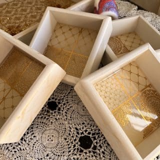 Vintage wooden box with fram motifs filled with a thin coat of resin