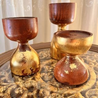 Beech Wood Candle Holder set of 3 polished with wood stain and cracked gold leaves