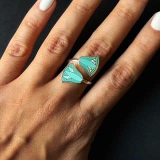Double Sterling silver Lotus #2 ring with handpainted enamel.