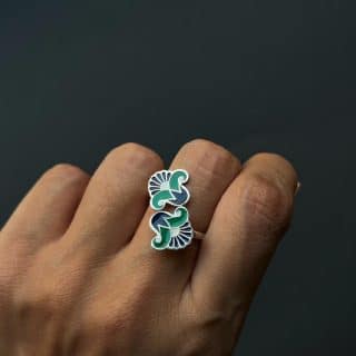 Sterling silver double lotus #2 ring with Handpainted enamel.