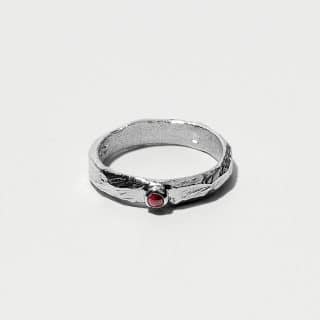 Essential Collection , Organic Textured Band Ring With Small Garnet Stone