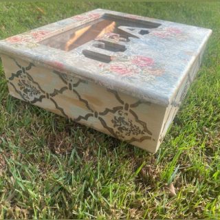 Wooden square cutlery organizer with calligraphy and gold leaf