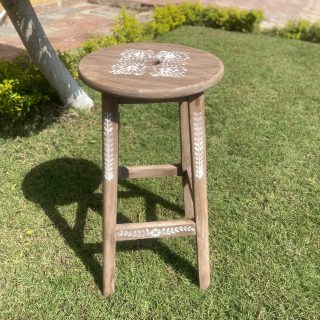 Wooden set tissue box and coasters with Arabic greetings and vintage blue color