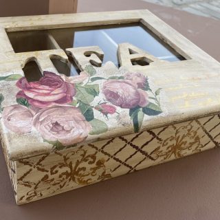 Wooden Prayer Corner: Mushaf Stand Fleuri beige x brown and matching prayer wear box