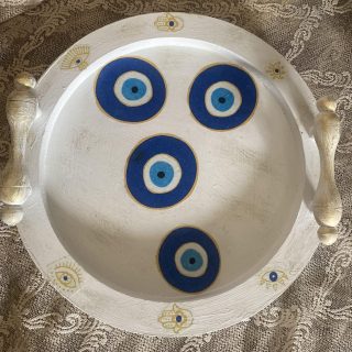 Wooden Tray with Turkish Coffee Set, Kaf Fatima & Evil Eye Design