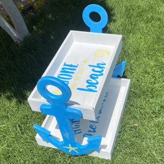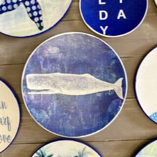 Wooden decoupaged summer coasters in colorful colors and flip flop design