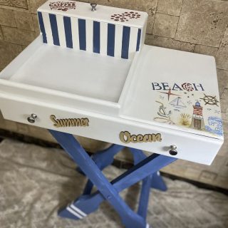 Wooden Plates & Cutlery organizer with drawer with Santorini design and colors
